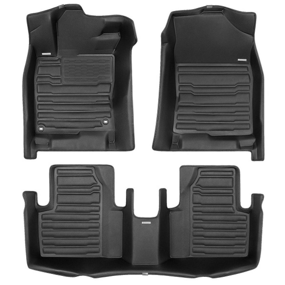 Коврики в салон автомобиля из экокожи для Land Rover Range Rover Velar 2017 -, черные (Skopa) премиум класса, не только имеет оригинальный внешний вид при этом защищает пол автомобиля от воды грязи и пыли, но и максимально добавляет роскоши салона авто. В производстве ковриков SKOPA разрабатываются форма и дизайн индивидуально каждого коврика. Используются новейшие технологии лазерного сканирования ковролина пола авто. После создается прототип коврика по данным сканирования. Прототип тестируется на авто, после вносятся корректировки для точного совпадения. Поэтому автомобильные коврики SKOPA повторяет все контуры ковролина вашего автомобиля, и закрывает 90% пола авто.