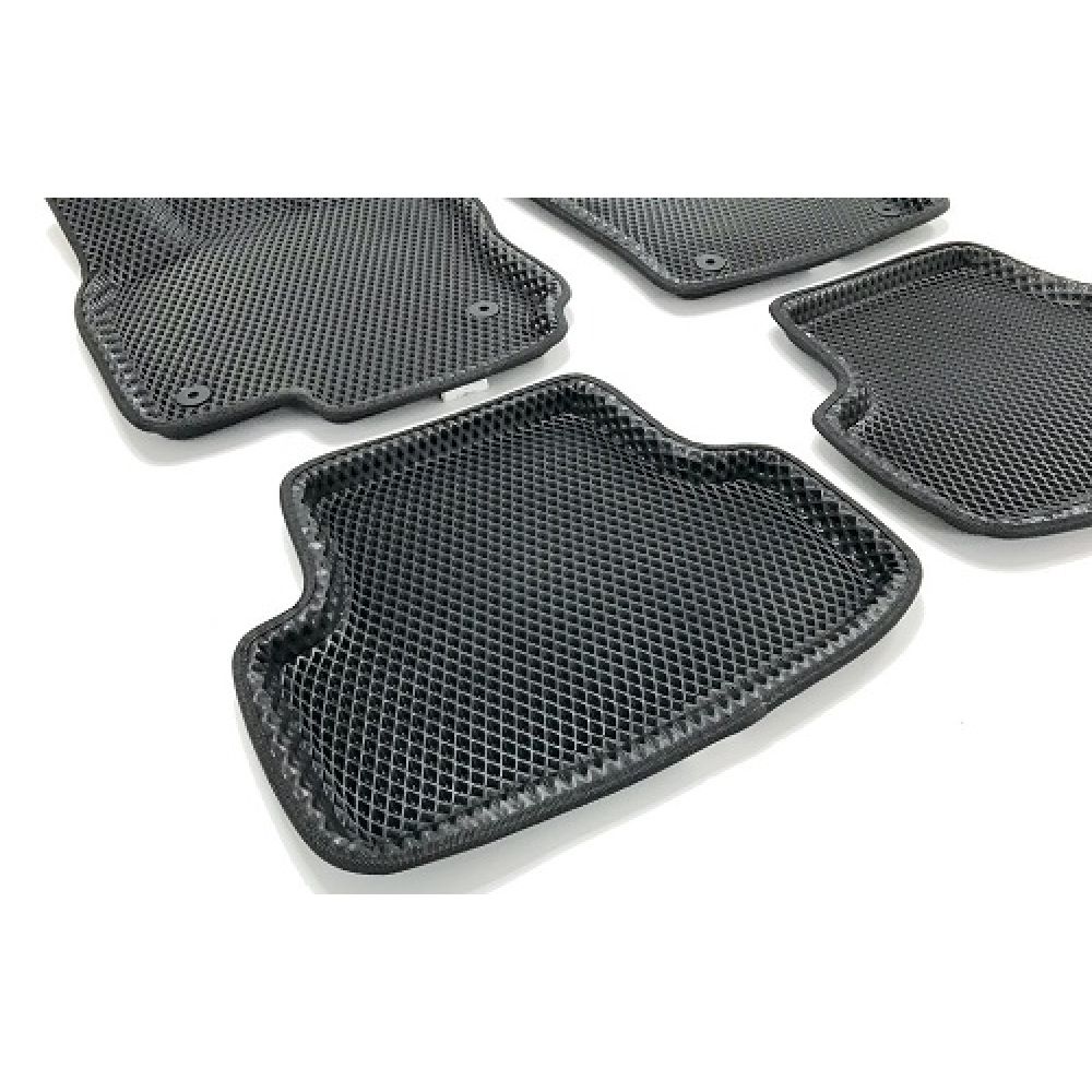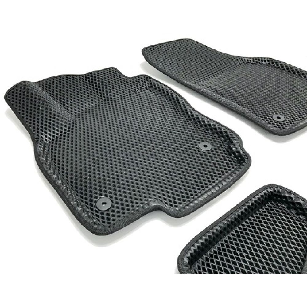 Автомобильные коврики в салон 3d EVA для Skoda Karoq 2018 - изготовлены из нетоксичного полимера, инновационного материала ЕВА. Авто коврики имеют шикарный дизайн, и очень практичную структуру в виде ромбовых ячеек, которые превосходно защитят салон от грязи, пыли, воды, снега и т. д. При попадании воды или грязи на коврик скапливается в ячейки и остается в ромбиках и не дает мусору разлетаться по салону. Для того чтобы почистить коврики достаточно их встряхнуть.