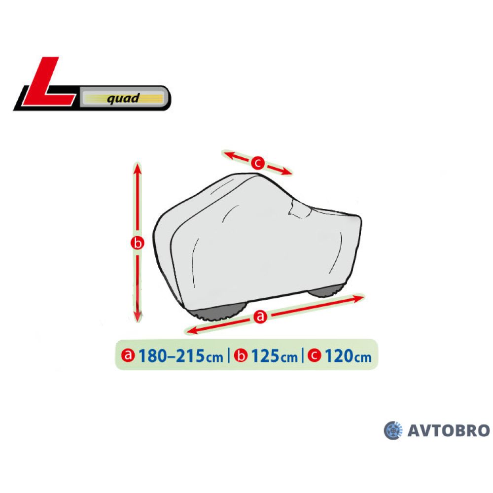 Высококачественный тент для квадроцикла «L» Quad „Mobile Garage” производства Польша, использовать можно зимой, летом, осенью и весной. Чехол защищает от солнца, дождя, снега, ветра, листья и другие природные явления. Чехлы - тенты Kegel-Blazuziak – лучший выбор для тех, кто имеет желание защитить свой квадроцикл, от влаги, замерзание, и сохранить его кузов от ржавчины. Тент изготовлен из прочного водостойкого материала: высокотехнологического полипропилена. Мягкая внутренняя часть тента не царапает ЛКП корпуса квадроцикла. На чехле имеются вентиляционные секции которые испаряют влагу и дышит под тентом, что предотвращает появлению ржавчины. Фиксируется чехол с помощью вшитой веревки по кругу тента и плотно стягивается (как мешок).