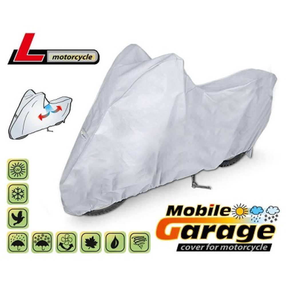 Высококачественный тент для мотоцикла «L» Motorcycle „Mobile Garage” производства Польша, использовать можно зимой, летом, осенью и весной. Чехол защищает от солнца, дождя, снега, ветра, листья и другие природные явления. Чехлы - тенты Kegel-Blazuziak – лучший выбор для тех, кто имеет желание защитить свой мотоцикл, от влаги, замерзание, и сохранить его кузов от ржавчины. Тент изготовлен из прочного водостойкого материала: высокотехнологического полипропилена. Мягкая внутренняя часть тента не царапает ЛКП корпуса мотоцикла. На чехле имеются вентиляционные секции которые испаряют влагу и дышит под тентом, что предотвращает появлению ржавчины. Фиксируется чехол с помощью вшитой веревки по кругу тента и плотно стягивается (как мешок).