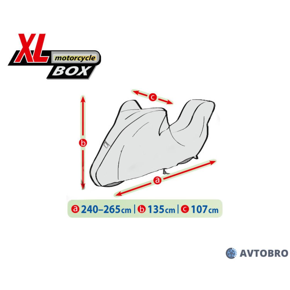 Высококачественный тент для мотоцикла «XL BOX» Motorcycle „Mobile Garage” производства Польша, использовать можно зимой, летом, осенью и весной. Чехол защищает от солнца, дождя, снега, ветра, листья и другие природные явления. Чехлы - тенты Kegel-Blazuziak – лучший выбор для тех, кто имеет желание защитить свой мотоцикл, от влаги, замерзание, и сохранить его кузов от ржавчины. Тент изготовлен из прочного водостойкого материала: высокотехнологического полипропилена. Мягкая внутренняя часть тента не царапает ЛКП корпуса мотоцикла. На чехле имеются вентиляционные секции которые испаряют влагу и дышит под тентом, что предотвращает появлению ржавчины. Фиксируется чехол с помощью вшитой веревки по кругу тента и плотно стягивается (как мешок).