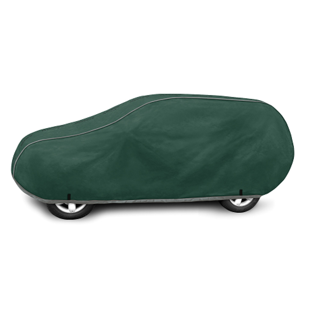 Чехол - тент автомобильный для джипа "L" 4.30см - 4.60см „Membrane Garage” изготовлен из водоотталкивающей мембранной ткани, которая не промокает, но очень хорошо пропускает конденсат. Эффективно защитит ваш автомобиль в любое время года. Идеальный вариант для солнечных жарких дней, так как ткань не позволяет перегреву кузова автомобиля. А также в зимний период защитит от замерзания льда, снега, инея. Очень эффективно защищает кузов автомобиля от природных явлений таких как – дождь, листья деревьев, пыльца, птицы и так далее. Автомобильный тент выдерживает сильные порывы ветра, при этом абсолютно не царапает кузов авто, потому как идеальные формы тента плотно сидят на автомобиле. Очень просто одевается и снимается.