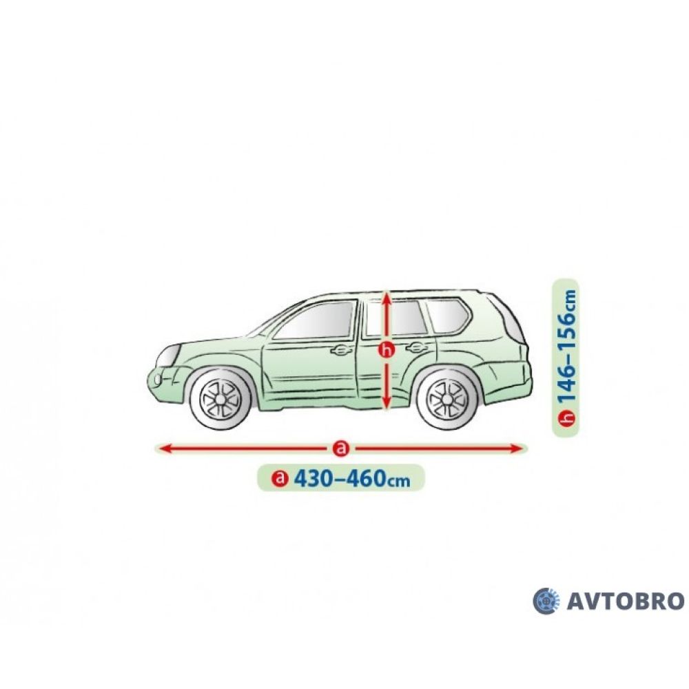 Защитный автомобильный тент для джипа "L" 4.30см-4.60см „ Perfect Garage” изготовлен из 4-х слойной водоотталкивающей мембранной ткани, которая не промокает, но очень хорошо пропускает конденсат. Мембранная ткань, из которой шьются тенты Perfect Garage, имеет плотность на 20% толще, не же ли у тента серии Mobile Garage. Эффективно защитит ваш автомобиль в любое время года. Идеальный вариант для солнечных жарких дней, так как ткань не позволяет перегреву кузова автомобиля. А также в зимний период защитит от замерзания льда, снега, инея. Очень эффективно защищает кузов автомобиля от природных явлений таких как – дождь, листья деревьев, пыльца, птицы и так далее. Автомобильный тент выдерживает сильные порывы ветра, при этом абсолютно не царапает кузов авто, потому как идеальные формы тента плотно сидят на автомобиле. Очень просто одевается и снимается.